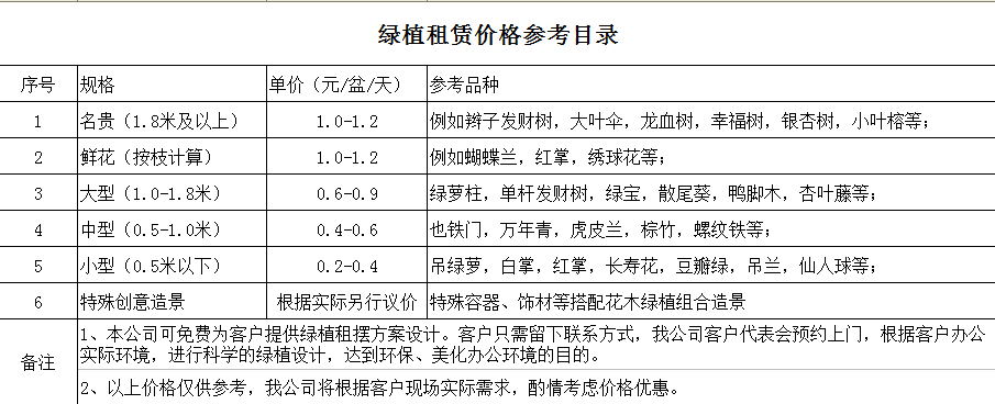 植物租賃收費標準:
