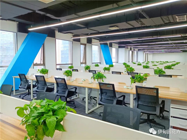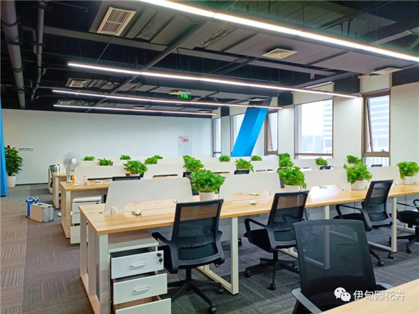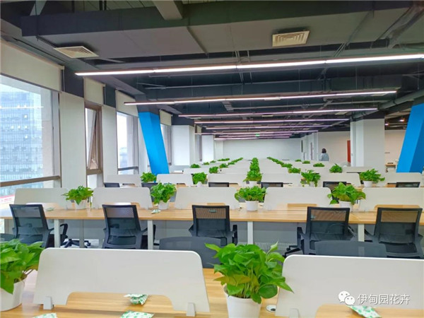 在空間較大的辦公大廳,每個桌上擺放一盆長相相似、著裝統一的綠蘿,是不是顯得特別干凈、整齊。