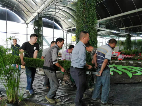 由于對質(zhì)量的嚴(yán)格要求,前期對方案、設(shè)計(jì)進(jìn)行了反復(fù)修改,又對材料進(jìn)行了多次調(diào)整。原本四天布展時(shí)間,被壓縮到了一天。懂得綠植組景的園藝人都知道,