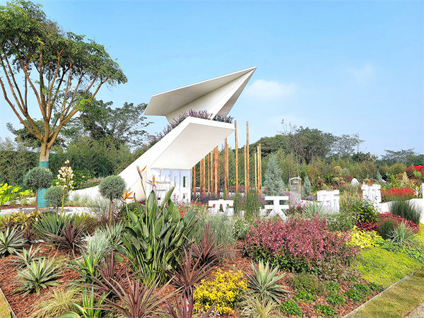 圓形的花谷中,由不同色彩的綠植組成空港新城的圖案。環繞空港花谷,周邊花境盤旋上升,那個形象標志的“紙飛機”由小到大,蓄勢待發,寓意夢想與遠航,同時也象征美麗簡陽的風光無限、逐夢騰飛。每年的花展,都是對參展團隊的一次測評,是對花卉人綜合能力的一次考量。能與花卉同仁交流切磋,和各路大咖同場競技,這本身就是一種收獲和成長。