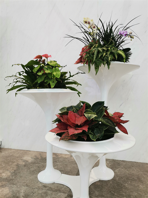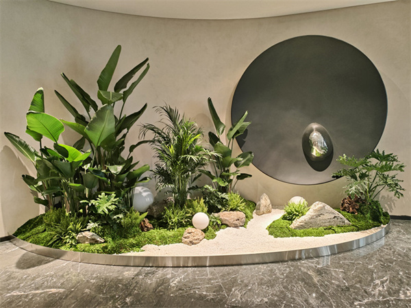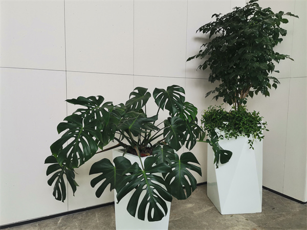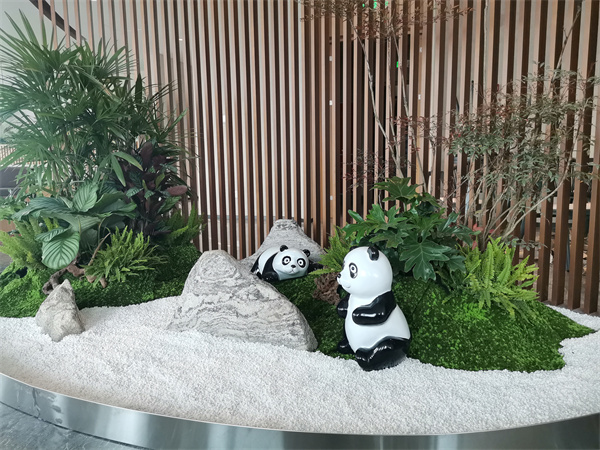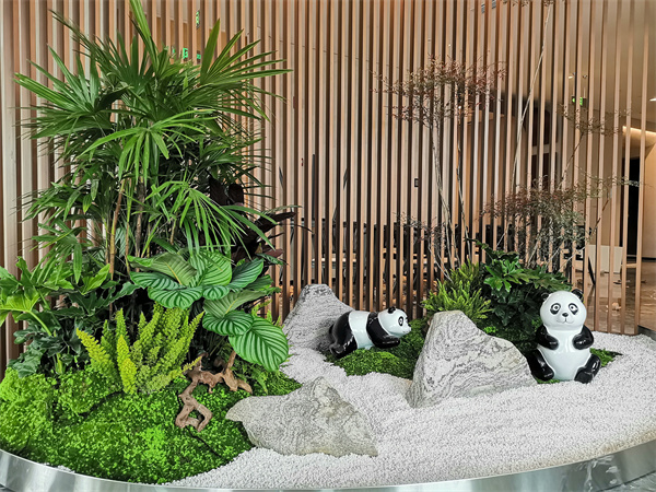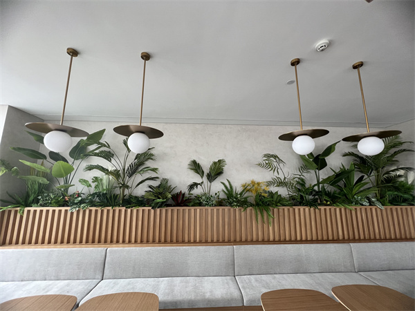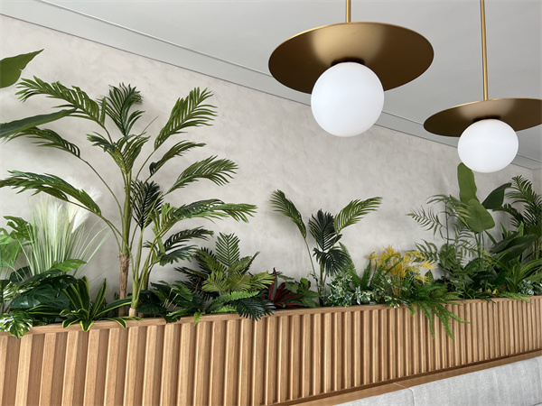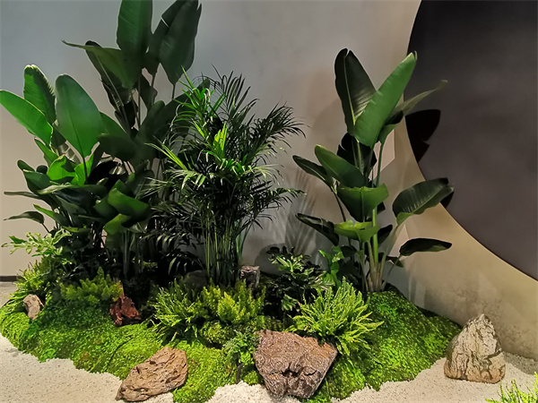 里面擺放上品種豐富、姿態(tài)各異的仿真植物