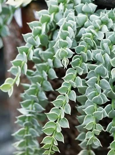 它的葉片是對生呈心形(是不是非常有愛呢),葉子肥厚,葉色有全綠、斑紋、斑塊等變化。枝條四散下垂,葉形玲瓏細致,垂曳姿態優雅。