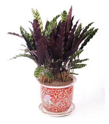 常用來做植物租擺貓眼竹芋是竹芋科肖竹芋屬,同屬植物約150余種,原產于熱帶美洲及印度洋的島域中。為多年生草本,印度洋的島域中。為多年生草本,高可達60厘米,具根莖,長而窄的矛狀的葉直接從根部長出,植株呈叢狀,葉上有深淺不同的綠色斑的矛狀的葉直接從根部長出,植株呈叢狀,葉背部多呈褐紅色。本種葉為銀綠色,并從中脈放射出深綠色斑點,背面有同樣形狀的褐紅色斑。因其葉片夜晚豎直挺立,白天散開癱軟,與貓眼相似,故名“貓眼”竹芋