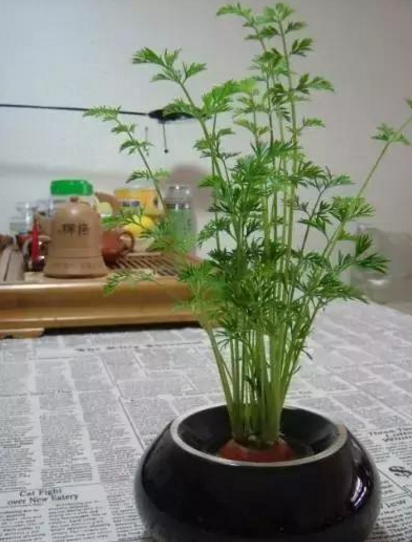 水培:將切開的部分放上一天晾干后,胡蘿卜切面朝下,平放在容器中,加少量清水(最好是靜置一天的自來水)。平時1-2天更換新水。
