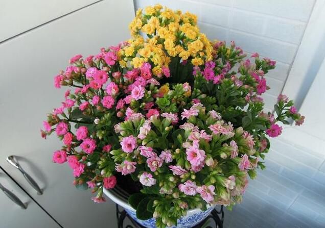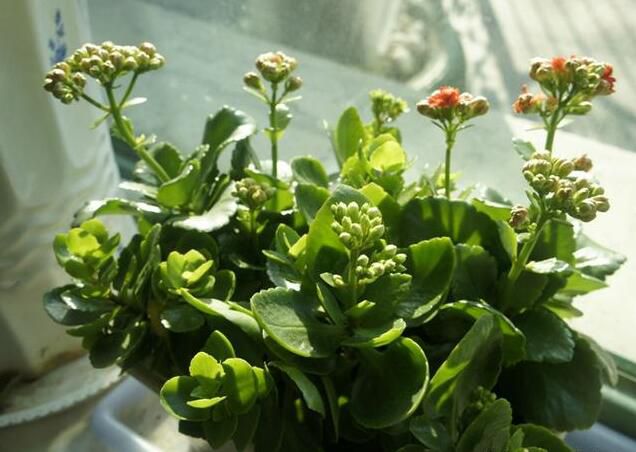 3、養長壽花的花盆不宜過大,盆子過大,花卉就使勁的自我發展光長根去了,占用過多養分,使得花苞的養分不夠,由此造成葉片稀疏窄小,開花少,花朵小。