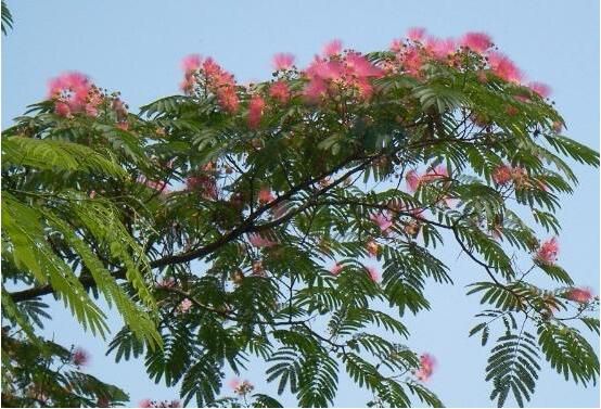 日當(dāng)中天,公園里高大的合歡樹顯得精神抖擻,它那羽狀的葉子在空中很瀟 灑地舒展著。可等到夜霧降臨之時(shí),那羽狀葉便悄無聲息地折合起來,睡意朦朧, 它也要睡覺了。