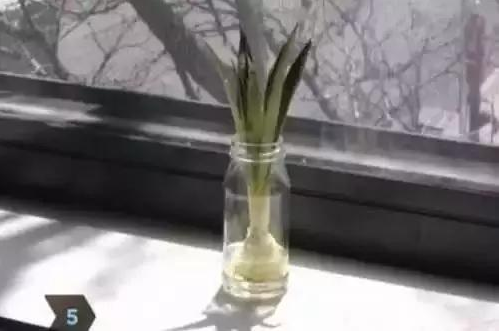 第四步:置于陰涼處晾幾天后,放進一個玻璃杯或合適的瓶子里水培,水的高度要高于白色莖部的一半但低于葉子的基部。