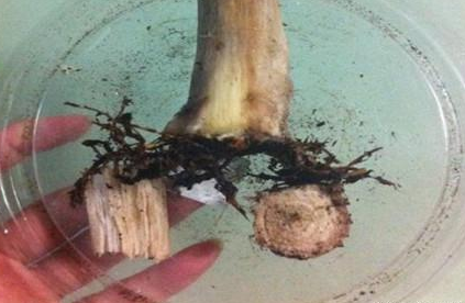 取出木質莖,先不要處理根系,將底部的泥土弄潔凈。