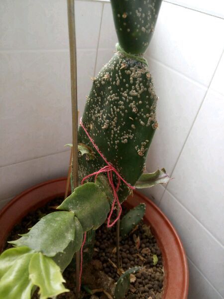 這個(gè)蟹爪蘭已經(jīng)明顯被蚧殼蟲(chóng)占領(lǐng)了。