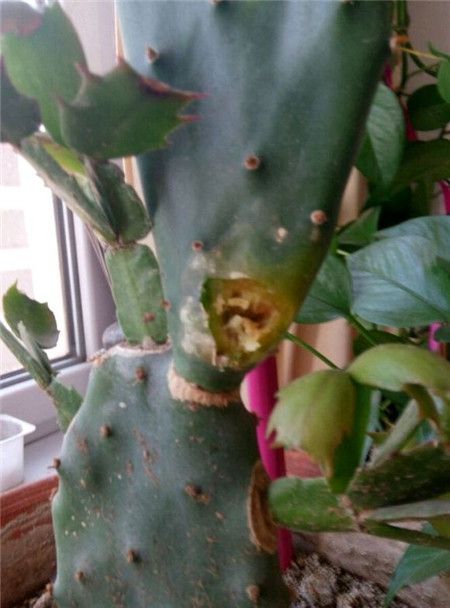 仙人掌這個(gè)地方爛了,怎么辦,上面還嫁接這蟹爪蘭呢,會(huì)不會(huì)影響生長(zhǎng)?
