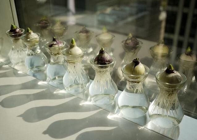 水培方法:在水培之前找一個(gè)合適的水培容易,可以購(gòu)買(mǎi)專業(yè)的水培容器瓶子,讓鱗莖正好卡在瓶口處。在品種放上1/2的水,讓根部剛好浸入水中。大約2周換一次水,水分蒸發(fā)較快可以直接加水。