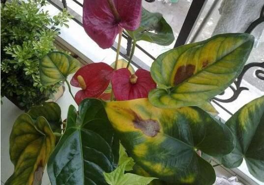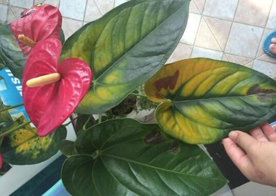 如果冬季室內溫度過低,紅掌的葉片也會發黃;如果室溫過高的話,植株蒸騰過盛,根部水分養分供應不足,也會使紅掌葉片變黃。