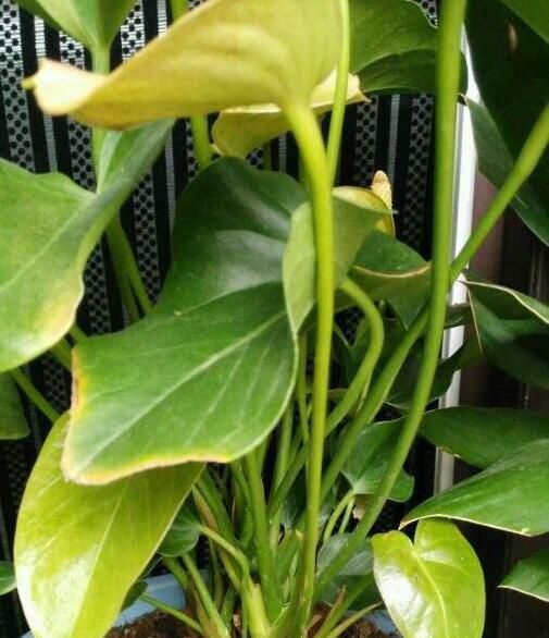 紅掌如果長期將其放置在蔽蔭處或光線不足的地方,就會導致生長衰弱,葉薄而黃,不開花或很少開花。