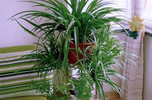 吊蘭是公認的空氣凈化器,可以吸附空氣中的一氧化碳、二氧化碳、甲醛等有害氣體。