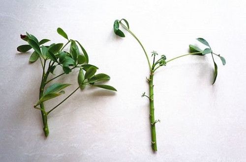 1、水扦插繁殖:在老株上剪取半木質(zhì)化有2-3個以上節(jié)的帶葉基段,長約10厘米,剪去下部葉片,只留上部的1-2個掌狀復(fù)葉,將下部2/3浸入盛有清水的玻璃器皿中,置于室內(nèi)明亮處,溫度保持在15℃以上,通常10天左右浸在水中的基段下部皮孔部位和基部剪口處,開始形成白色的愈傷組織,不久便從這些地方分化形成不定根。約經(jīng)過45天左右水插的基段便生出6厘米以上的根,并且長出白色根毛,這時即可進(jìn)行正常管理。