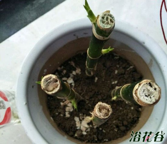 如果是土栽富貴竹,可以將剩下的富貴竹枝條剪掉,然后將剪掉的枝條順手插入盆內,這樣又多出不少富貴竹,當然剪掉的枝條拿來水培也可以。